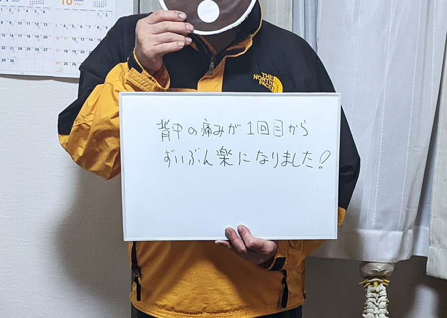 症状は背中痛でした。