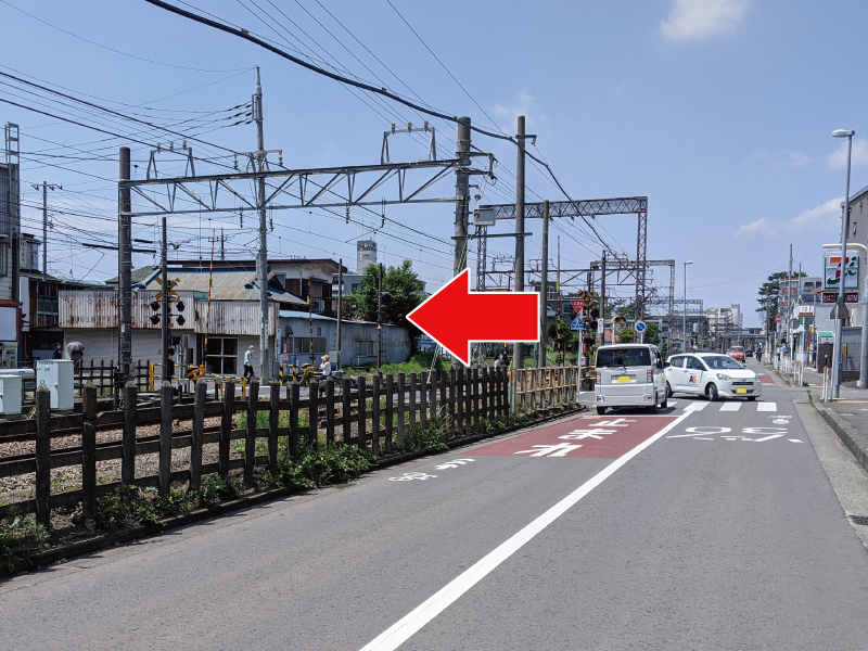 最初の踏切を超えてください。(左折)