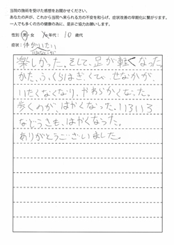 施術を楽しかったと言ってくれて、ありがとう!3回の施術で痛みも取れ、体が軽くなったとのこと。