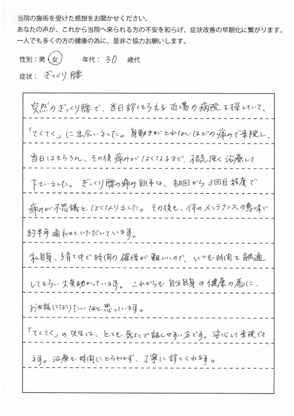 突然のぎっくり腰で、当日診てもらえる